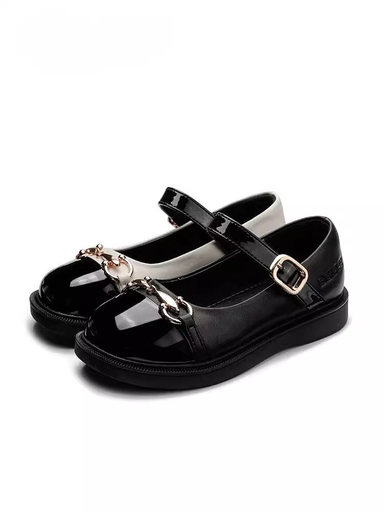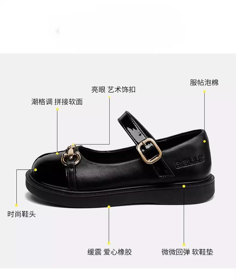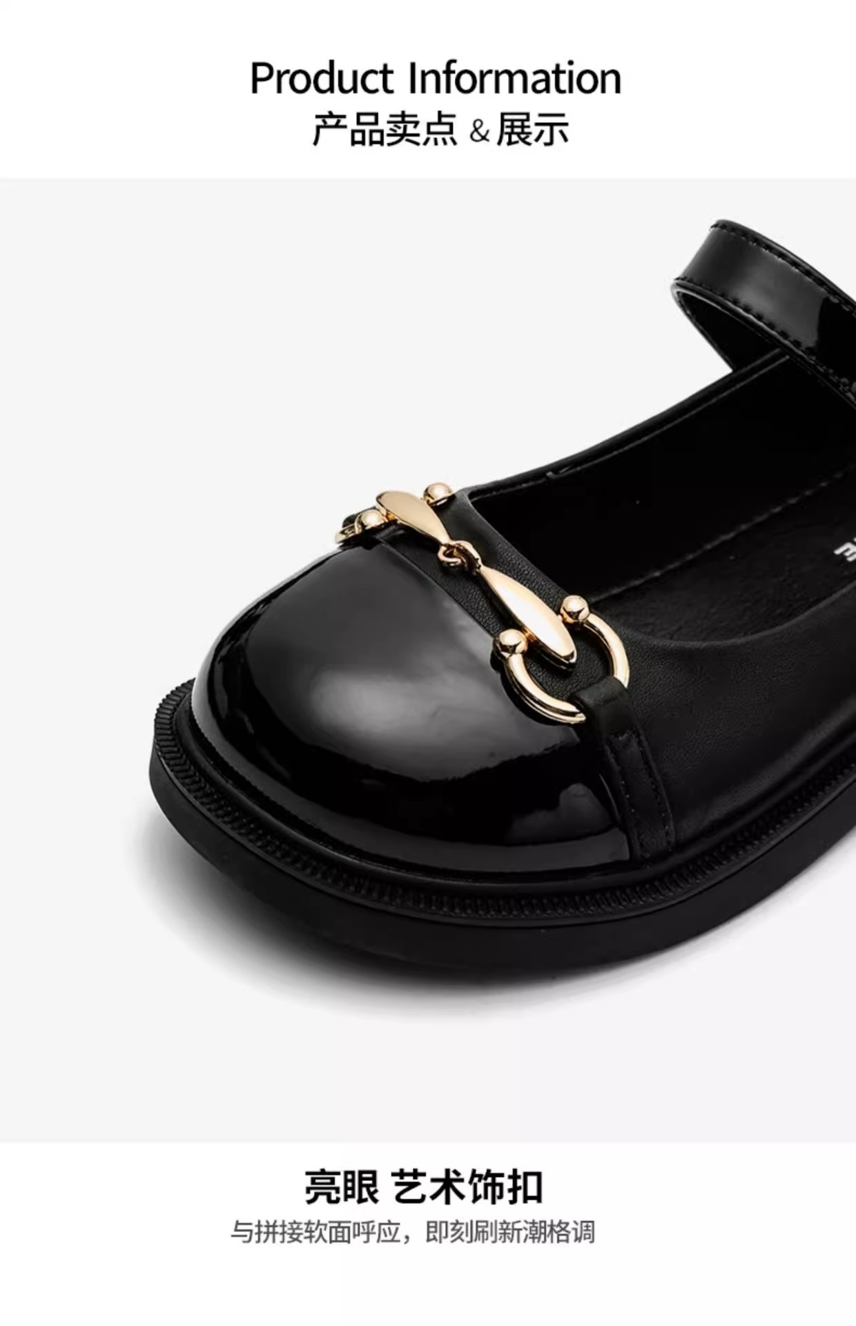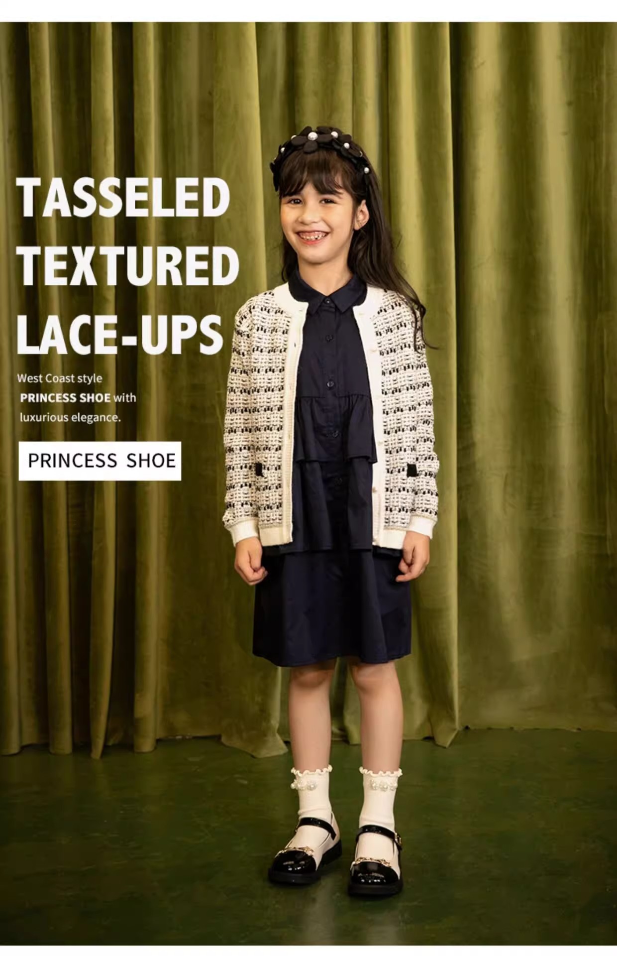 酒红色儿童皮鞋女童春秋季新款真皮珍珠吊坠软底学生单鞋演出舞蹈
