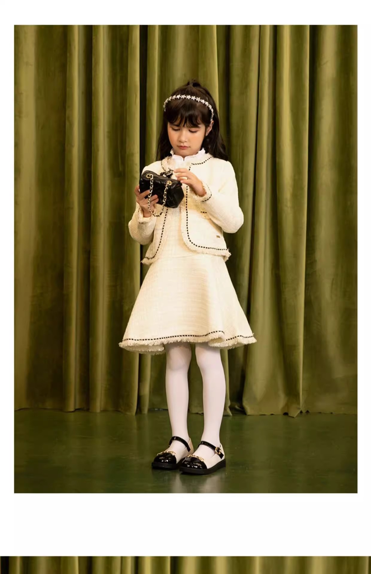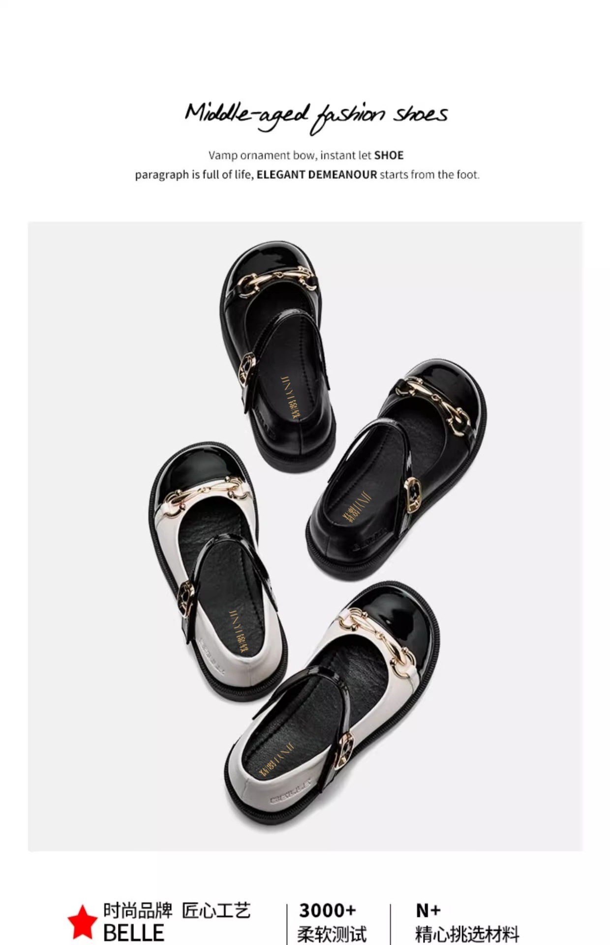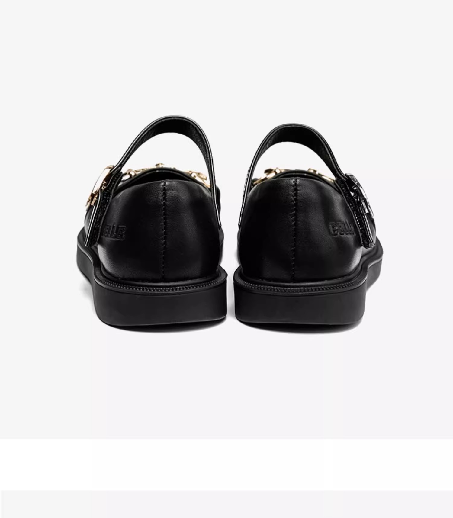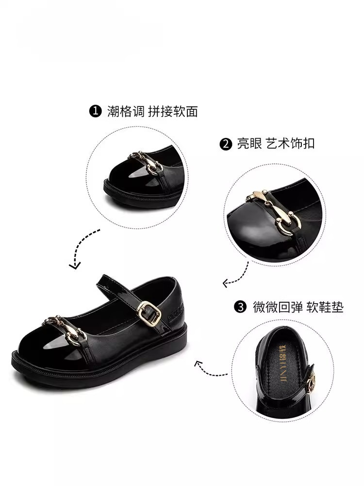 酒红色儿童皮鞋女童春秋季新款真皮珍珠吊坠软底学生单鞋演出舞蹈