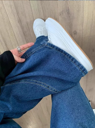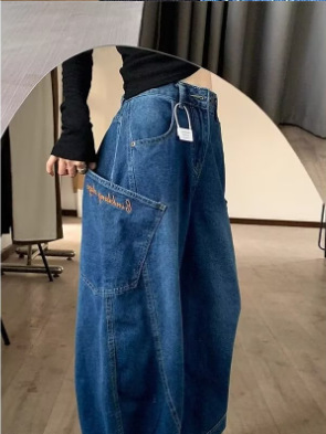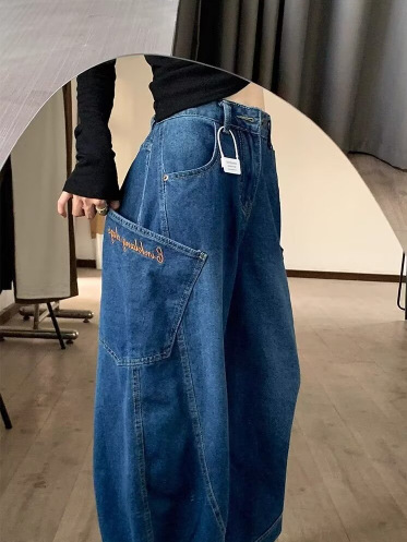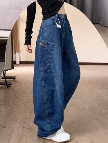 Choice 美式复古高街弯刀牛仔裤女春秋新款高腰宽松显瘦大口袋拖地阔腿裤