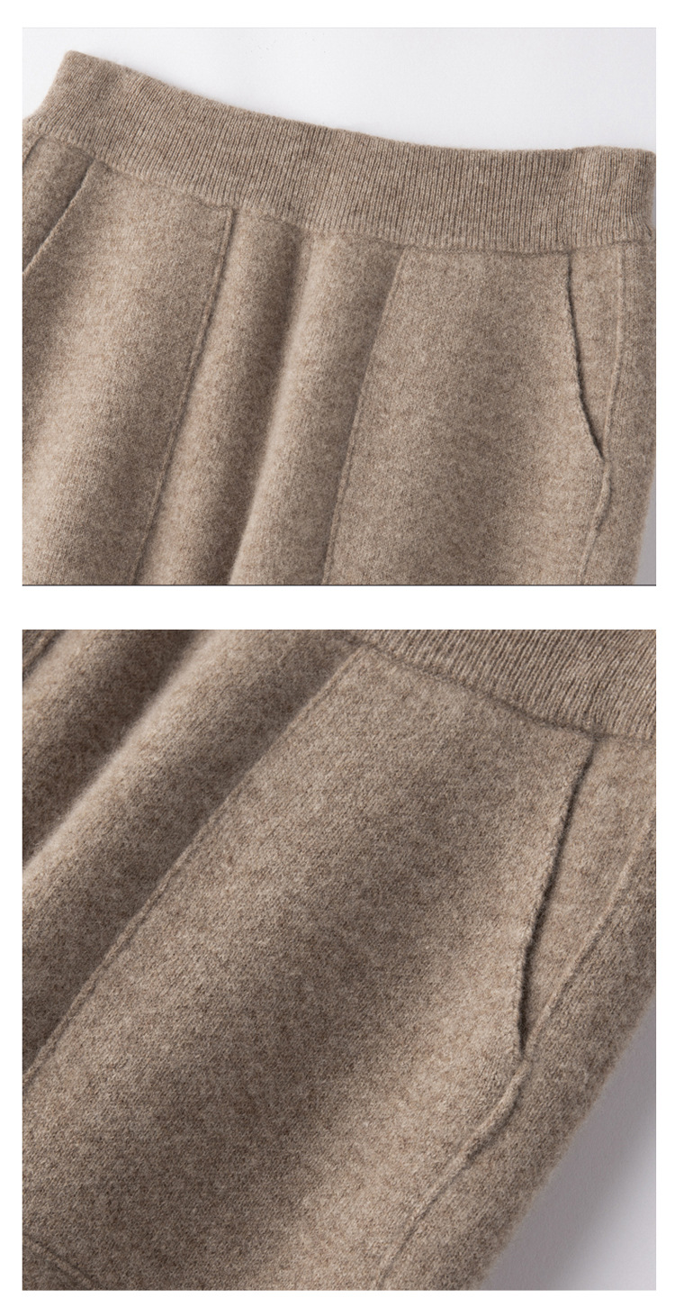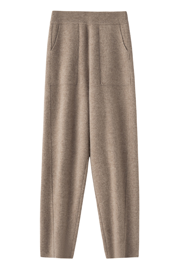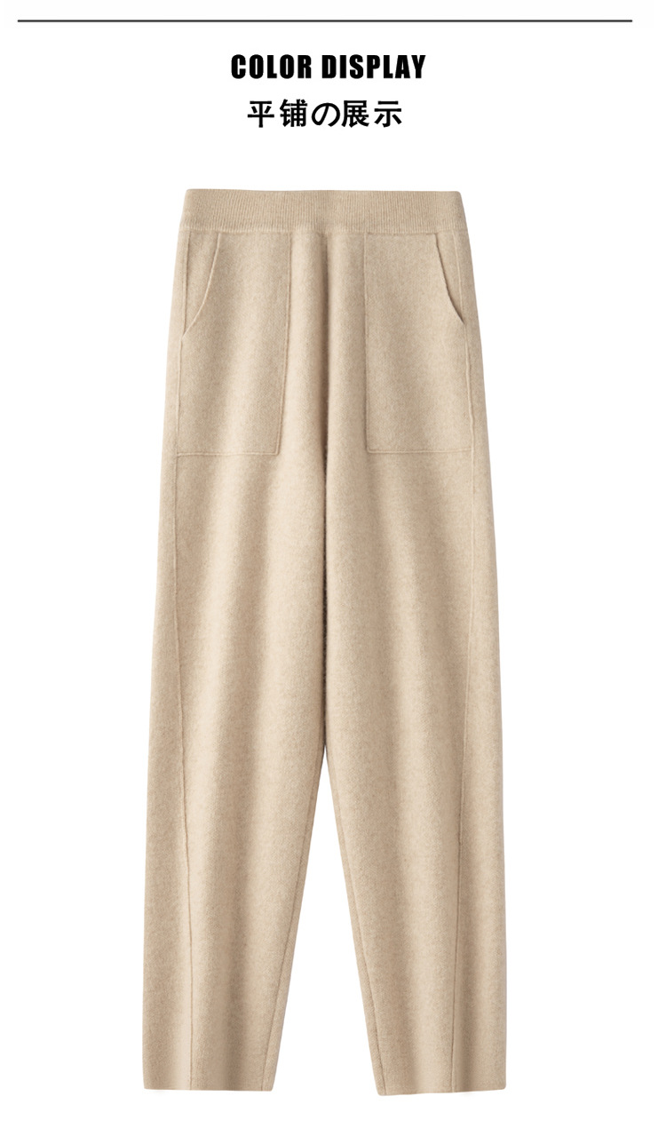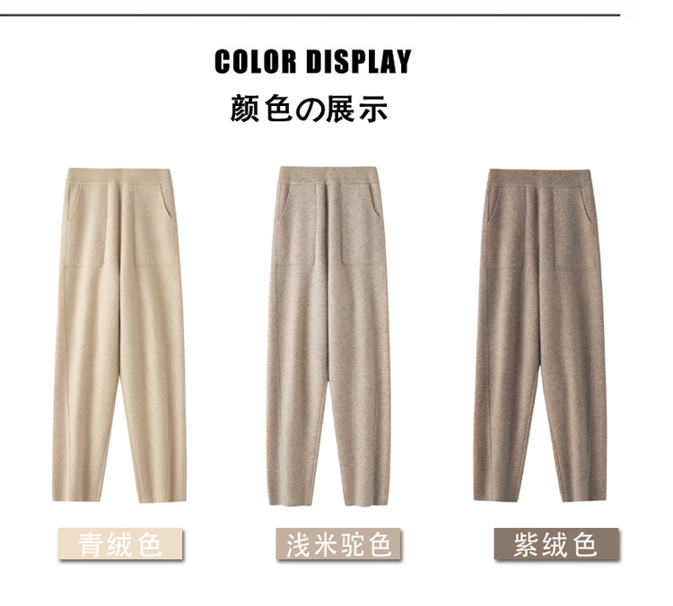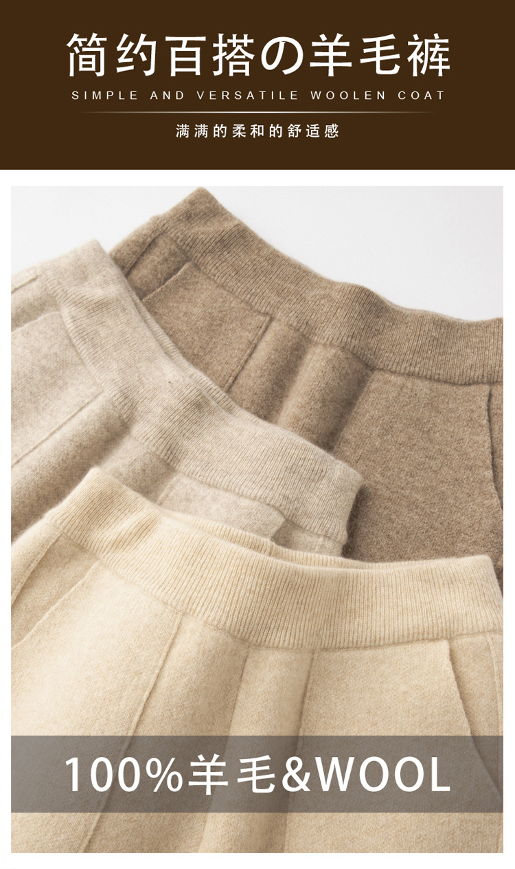 Choice 羊毛小脚裤纯羊毛秋冬新款女士高腰带兜扭边保暖长裤垂坠感哈伦裤