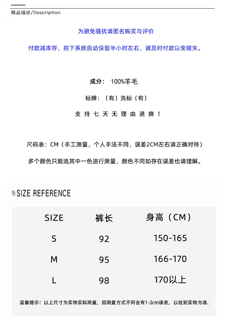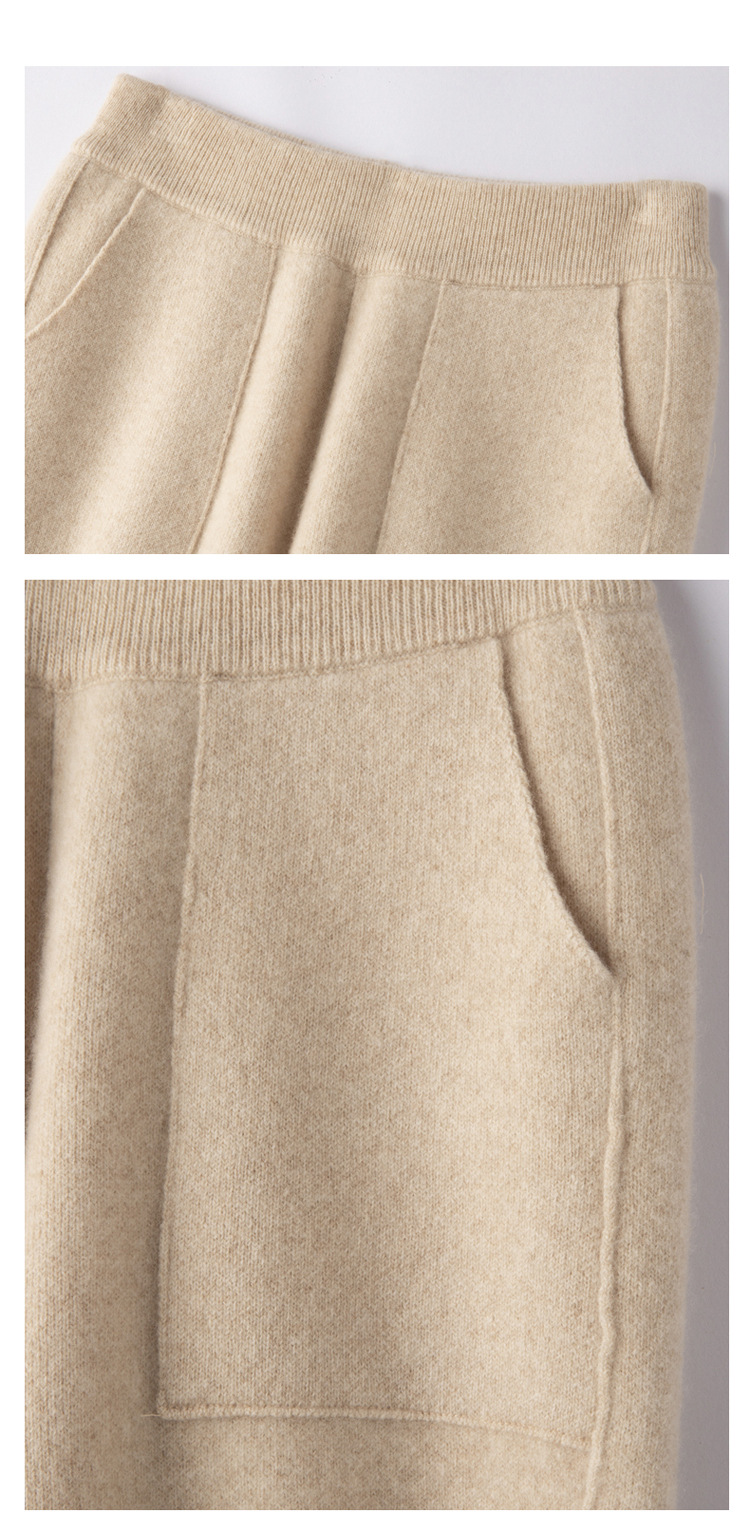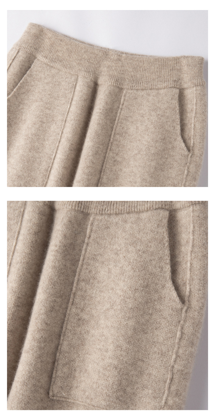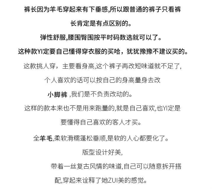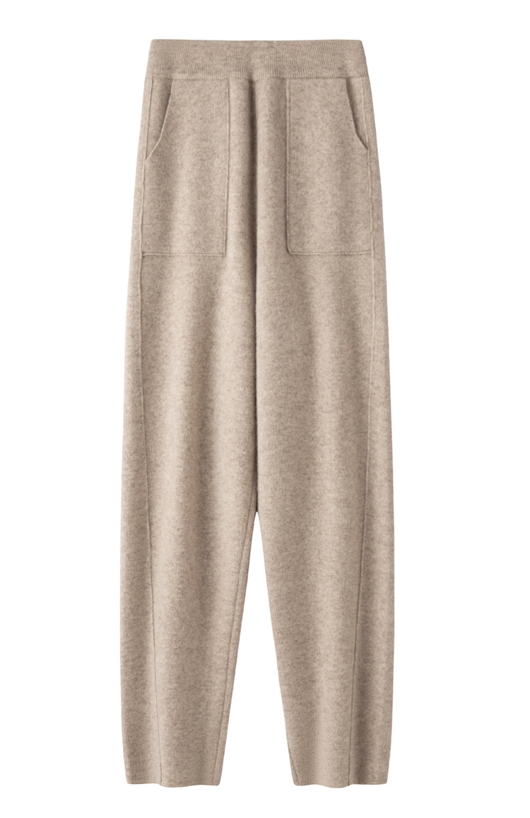Choice 羊毛小脚裤纯羊毛秋冬新款女士高腰带兜扭边保暖长裤垂坠感哈伦裤
