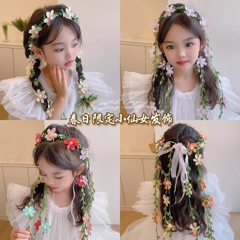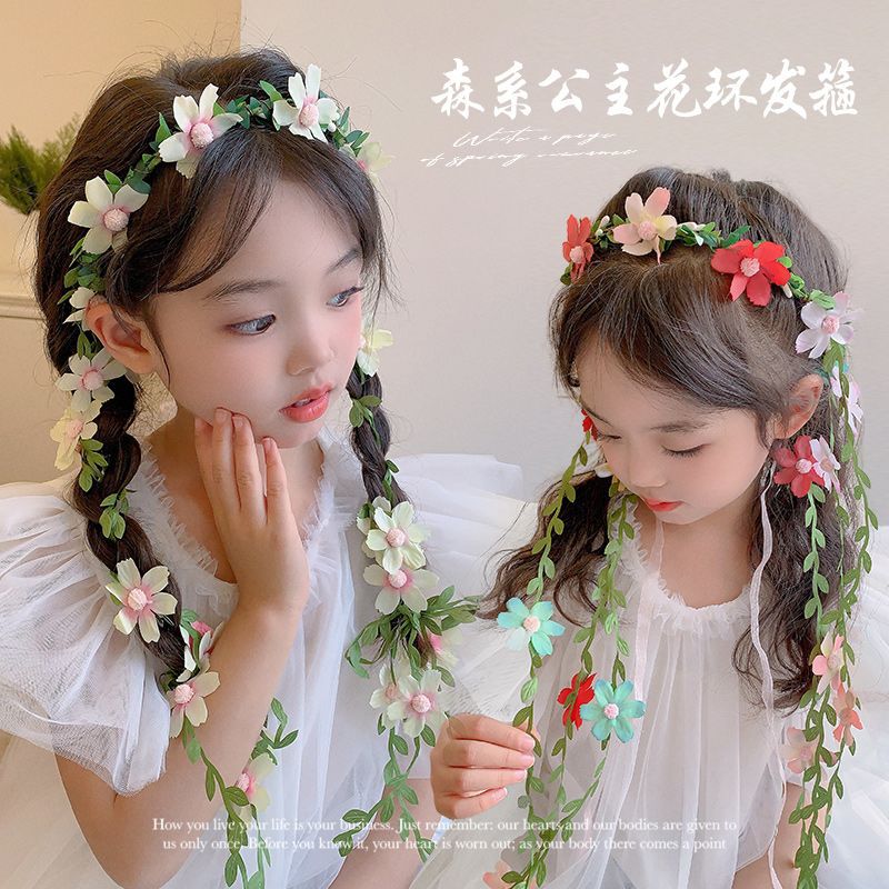 儿童发箍公主超仙花环头饰女孩森系仿真花朵编发头箍女童头花发饰