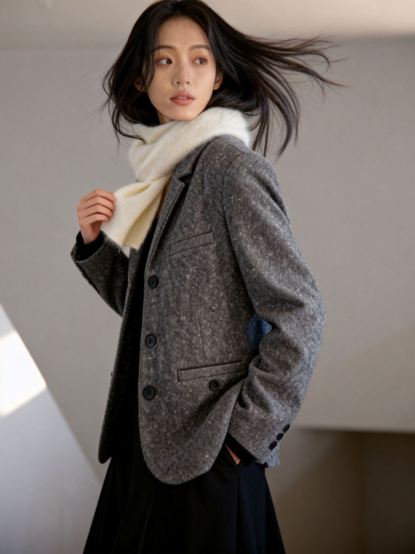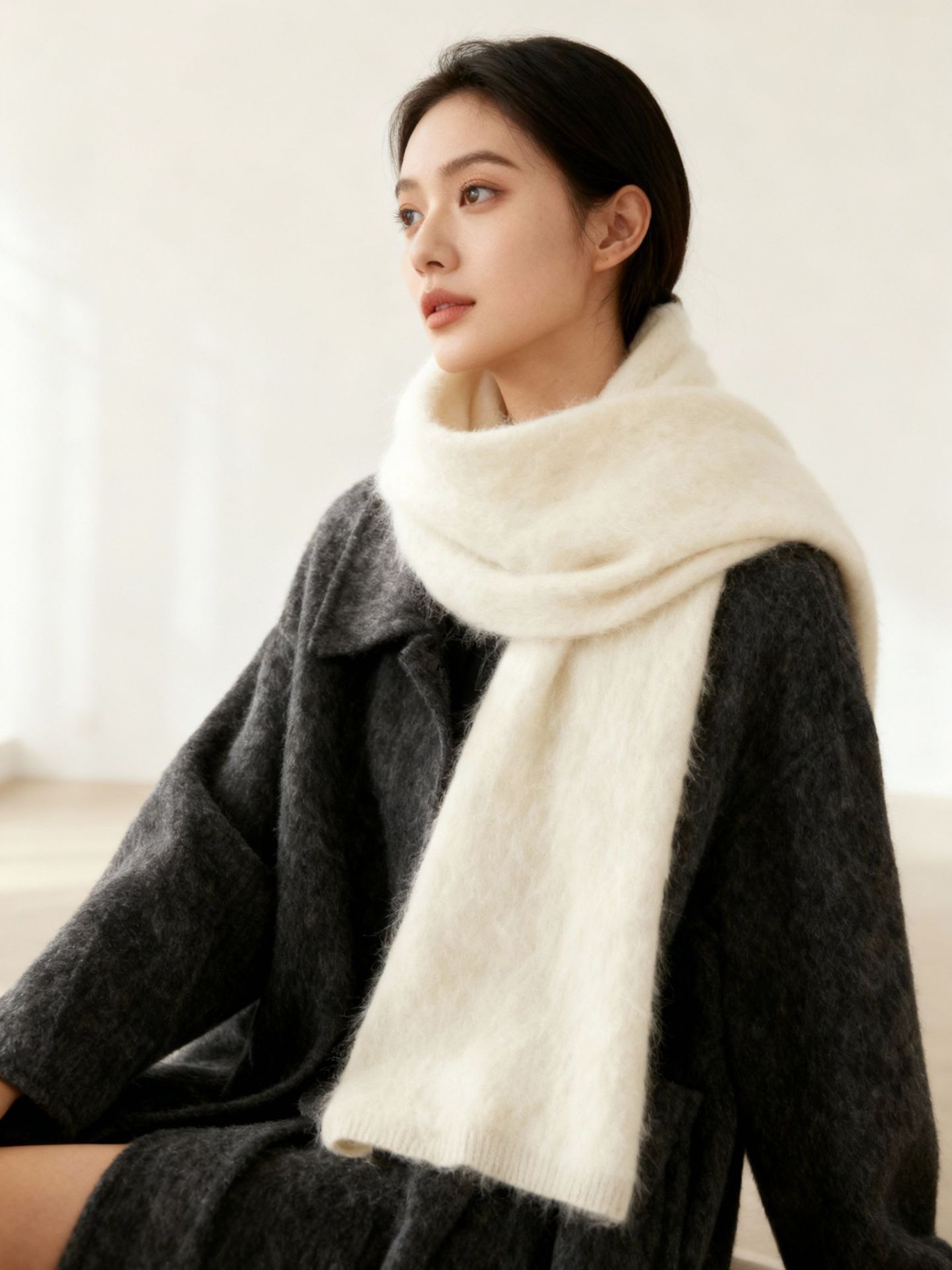 Choice 羊绒拉毛围巾羊毛围巾女冬季软糯保暖高级感简约百搭纯色羊绒围脖