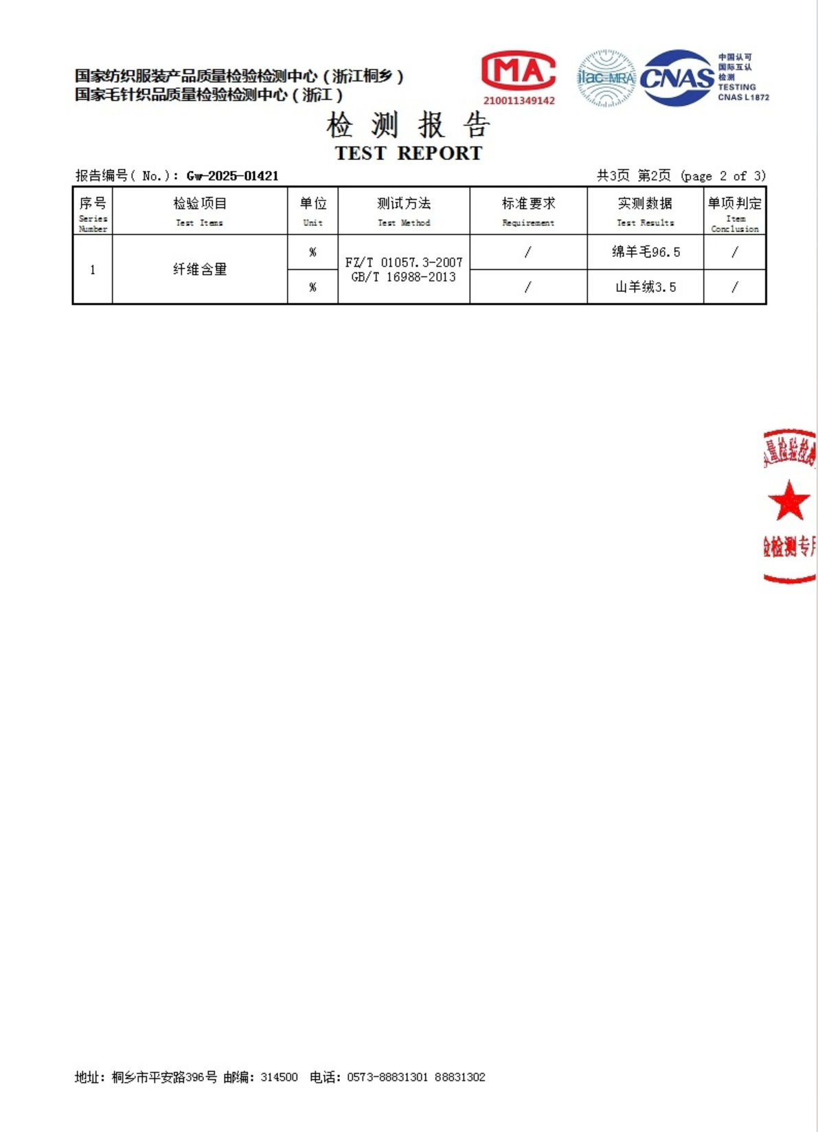 主面料成分含量
